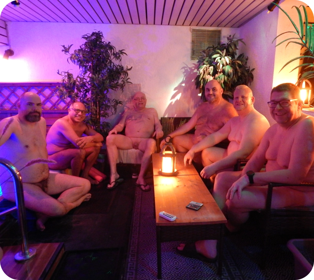 Erstes Wellness-Wochenende der Taunus-Nackt-Mountainbike- Gruppe in der Villa Wickenberg in Runkeln / Hofen am 15.-16.02.2025 Nun verabredet sich die Gruppe ja schon etwas mehr als ein Jahr zu regelmäßigen Wellness-Abenden in der Villa Wickenberg und so kamen wir auf die Idee, mal ein Wochenende dort zu verbringen.Bislang stellten wir immer fest, dass die 4 Stunden, die wir im Wellnessbereich verbrachten, so schnell an uns vorbeiflogen, dass eine Verlängerung absolut Sinn machte. Steht schließlich in diesem Jahr auch das erste große Nackt-Event mit den Hessischen Naturistentagen auf dem Krackhof in Flieden an. Also hatten wir sicherlich noch so einiges zu besprechen. Aber auch an ein paar Spiele für den geselligen Abend war gedacht, wie ein Riesenmikado oder Jenga.Um 16 Uhr konnten wir das Haus beziehen und nach einer kurzen Einweisung des Vermieters hieß es dann raus aus den Klamotten und auf in den Wellnessbereich für eine erste Runde im Pool. Der erste Saunagang wurde auf die Zeit nach dem Abendessen verschoben, da wir erst einmal vergessen hatten, die Sicherung für die Sauna einzuschalten.Das Abendessen wurde uns freundlicherweise vom Vermieter der Villa geliefert, der dann auch mit uns aß und sich auch textilfrei an der geselligen Runde beteiligte. Es war ein rundum gelungener Abend, mit vielen witzigen Anekdoten und wirklich vielen, tollen Gesprächen.Nach dem Essen ging es dann in Sauna, die mittlerweile gut geheizt war. Der Abend verging mal wieder wie im Flug gefüllt von angeregten Gesprächen und witzigen Geschichten. Letztlich kamen wir gar nicht dazu ein Spiel zu spielen. Es wurde spät und die Teilnehmer verabschiedeten sich nach und nach und bezogen die gemütlichen Zimmer.Um 8:00 Uhr wurden die Gäste so langsam wieder wach und es füllte sich das Esszimmer mit Teilnehmern und dem Duft von frisch gebackenen Pancakes. Daneben gab es noch frisch aufgebackene Croissants und reichlich Kaffee, sowie lustige Gespräche und allerlei freundschaftliche Diskussionen.Um 11:00 Uhr wurde das Wochenende dann beendet, es erwartete uns strahlender Sonnenschein und das schöne Gefühl, dass wir mal wieder mit Freunden eine großartige, nackte Zeit verbracht haben.Übrigens warum sind uns diese nackten Begegnungen so wichtig?Es hat sich mal wieder gezeigt, dass man sich nackt einfach auf einer ganz anderen Ebene begegnet, es ist sofort eine Vertrautheit und Offenheit bei allen Teilnehmern vorhanden, die Gespräche in einer Tiefe zulassen, die man nur selten erreicht. Man begegnet sich sofort auf Augenhöhe und geht scheinbar auch achtsamer mit dem Gegenüber um. Was wirklich aufgefallen ist, man hat überhaupt nicht gelästert, sondern hat über großartige Ereignisse aus der Jugend oder aus seiner eigenen nackten Geschichte erzählt. Ein wunderbarer Austausch unter Freunden und mit der Aussicht auf eine tolle, nackte Radsaison, die nun langsam wieder auf uns zukommt und die wir alle kaum erwarten können.Ralf